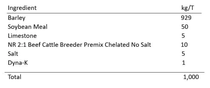 Feed to beef cattle. Premix consumption will typically be between 50 and 100 grams per head per day. Provide salt free choice and ensure access to clean water at all times. Contact a New Rosedale Feedmill representative for more information.